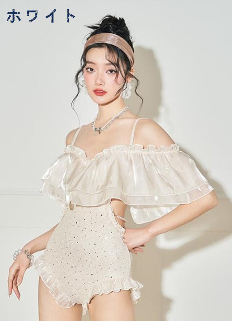 連体水着 水着 一字肩 フリル セクシー ストラップ スリム リゾート 温泉