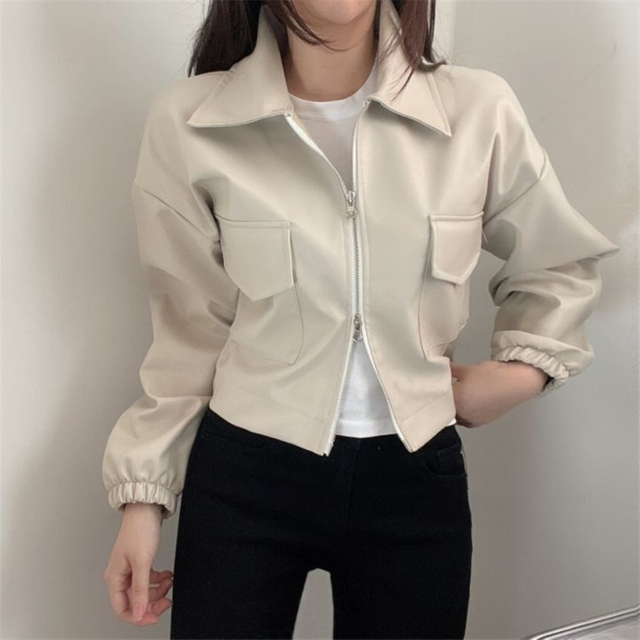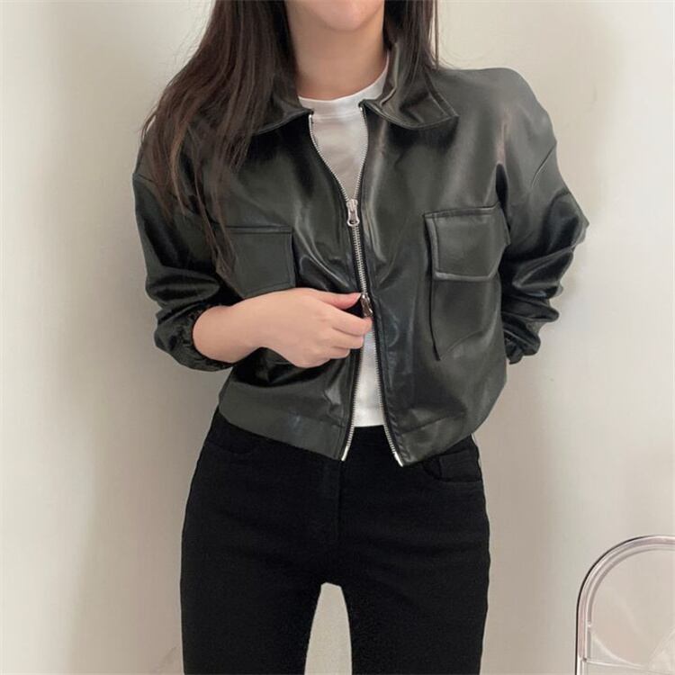 1枚あれば着こなし幅広がる ダブルポケット コート エレガント レザー ライダースジャケット