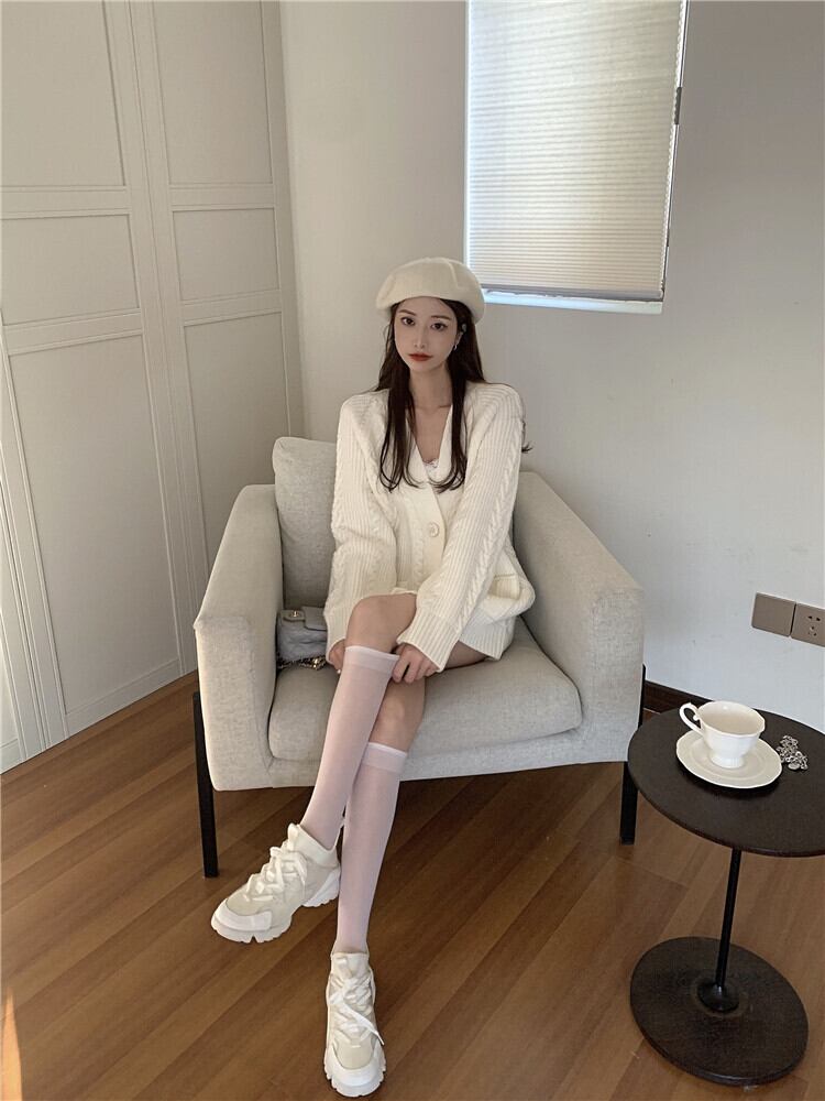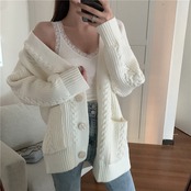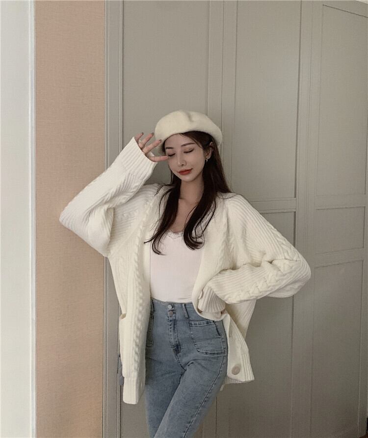 怠惰な風 カジュアル 麻の花 Vネック 単体ボタン ニット カーディガン sweet系 百掛け スリム おしゃれな